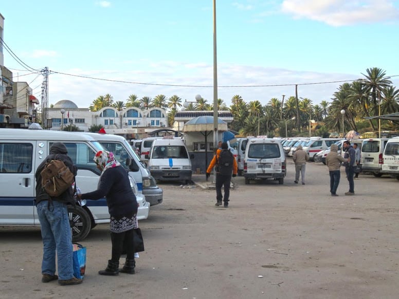 5h15 : déjà au terminal. Le bus pour Gafsa, puis le louage, taxi collectif, jusqu’à Tozeur, s’impose. Les places s’arrachent dans un brouhaha impatient. Quatre heures de route permettent enfin de récupérer un peu de sommeil. À Gafsa, la ville s’agite, mais pas le temps de s’attarder : l’objectif, c’est Tozeur. Encore une heure à attendre le prochain louage, puis l’oasis se dévoile à l’horizon, sous la lumière de midi.
