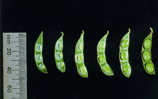 Figure 3 : (Source : IPNI) Une vue latérale éclaire la progression des gousses et graines en cours de développement, illustrant parfaitement le cheminement des grains de 5 à 11 mm.